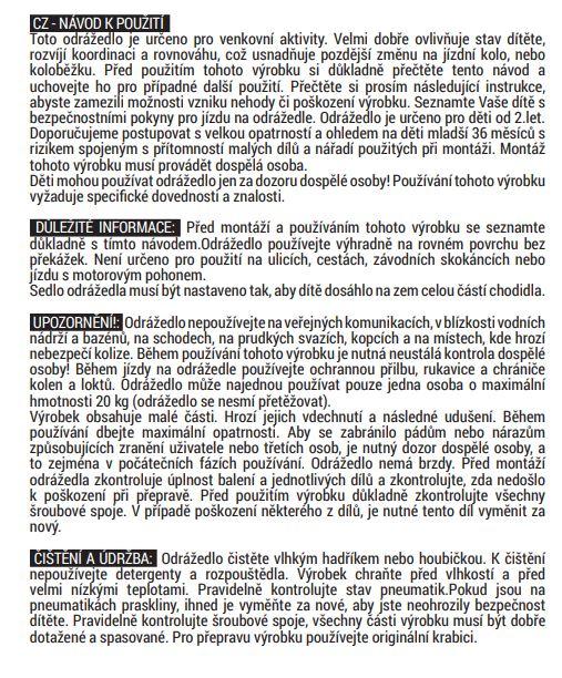 Doporučený věk 2+, maximální hmotnost uživatele: 20 kg