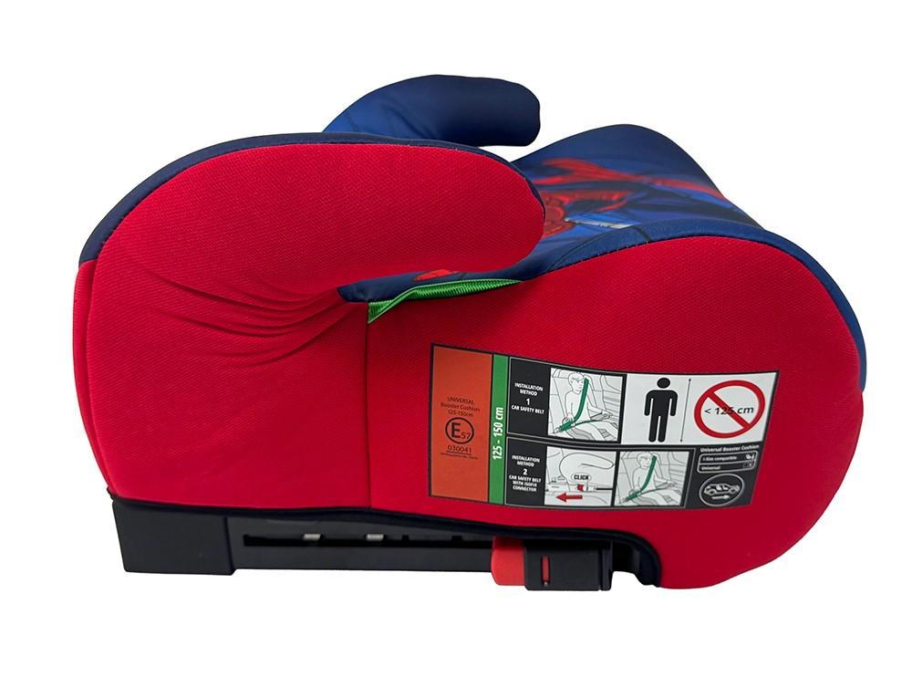 Podsedák Spiderman umožní pohodlné a bezpečné sezení v autě dětem s výškou postavy 125-150 cm a hmotností 22-36 kg.