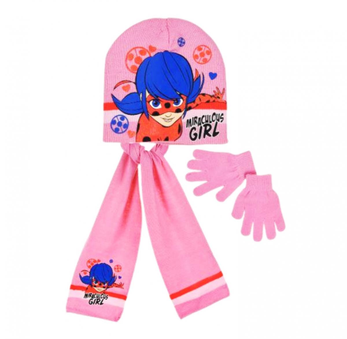 Souprava šála, čepice a rukavice.