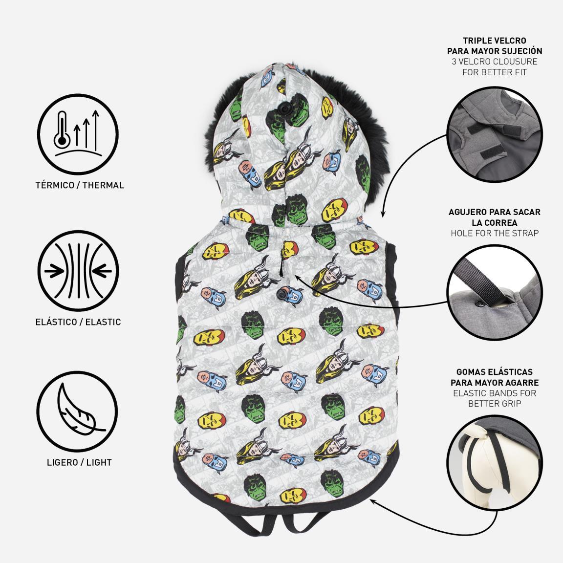 Zimní obleček, který zahřeje Vašeho psa s motivem Avengers.