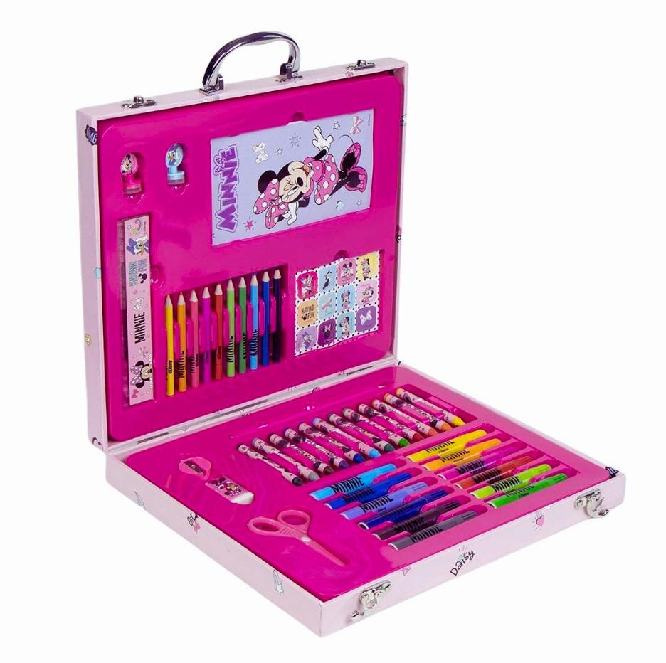 Kreslící souprava Minnie v praktickém dřevěném kufříku s kovovými úchyty.