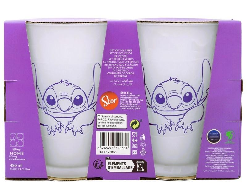 Dárková sada 2 ks velkých skleniček s motivem Lilo a Stitch o objemu 480 ml.