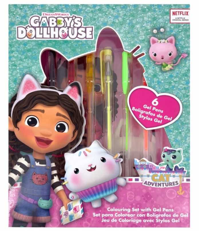 Dárková sada notesu a 6 gelových propisek s motivem Gábinin Kouzelný domek.