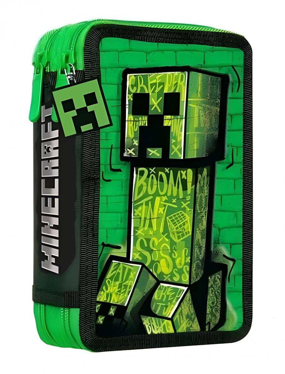 Dvoupatrový penál s výbavou s motivem Minecraft.